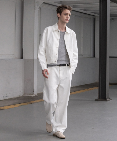 트윌 코튼 세미 와이드 팬츠 [화이트]