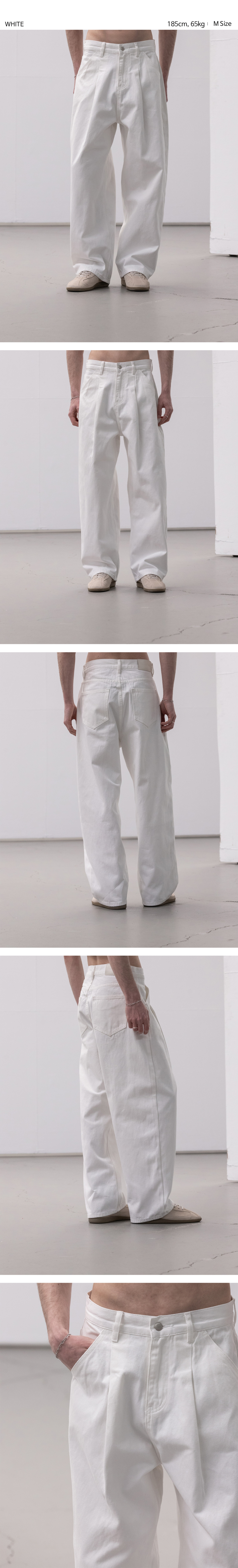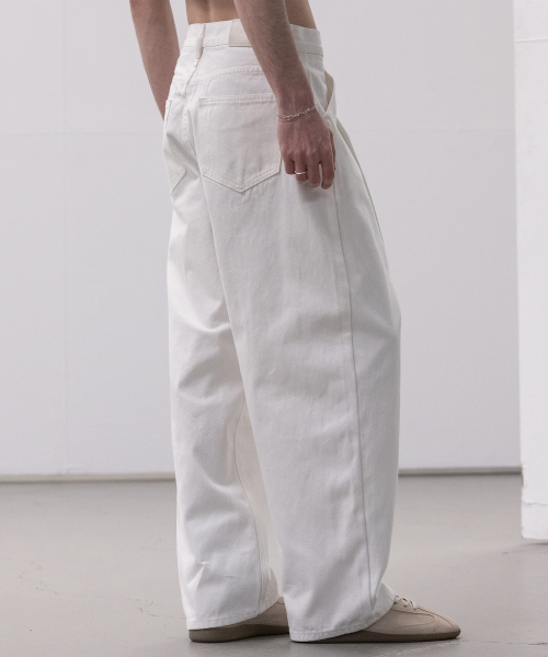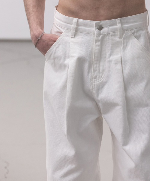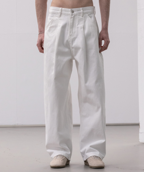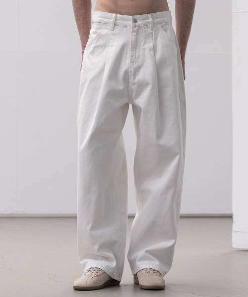 워시드 코튼 원턱 와이드 팬츠 [화이트]
