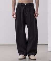 워시드 코튼 원턱 와이드 팬츠 [블랙]