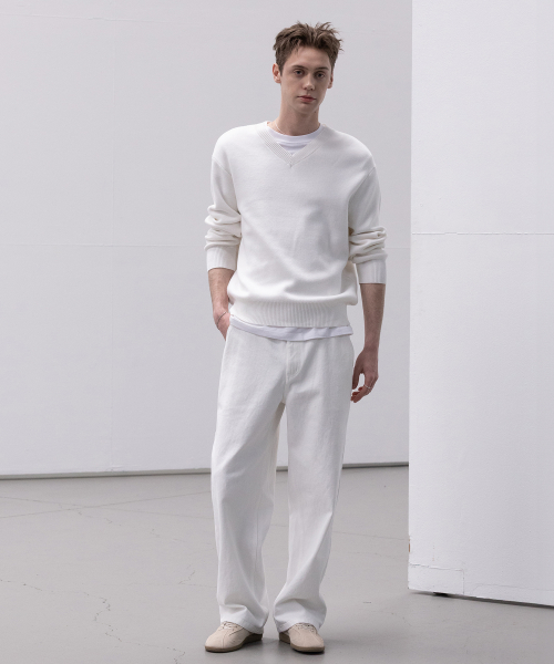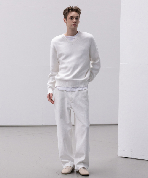 트윌 코튼 세미 와이드 팬츠 [화이트]