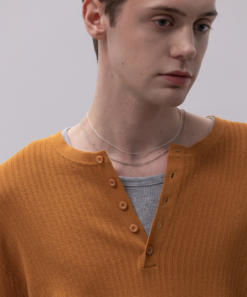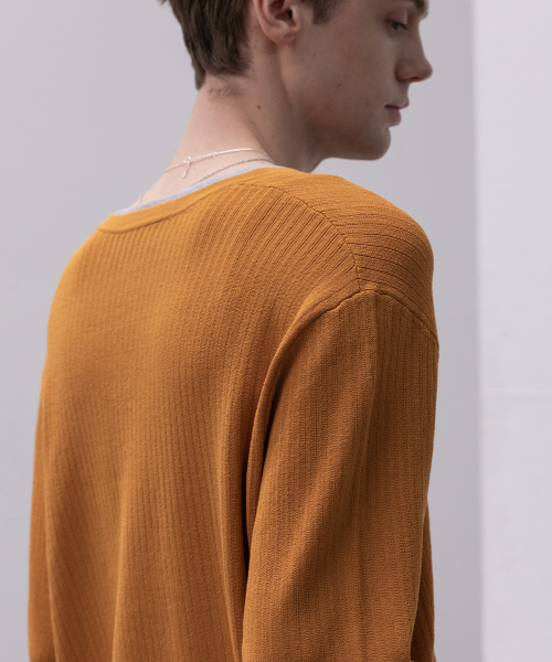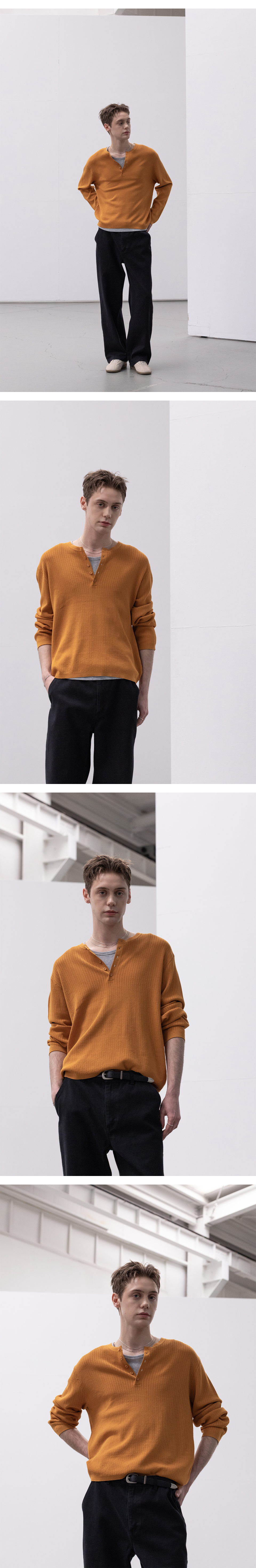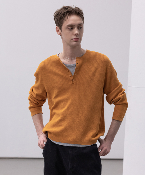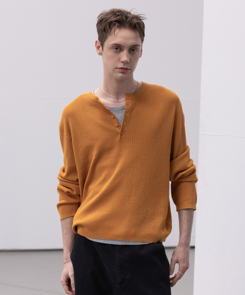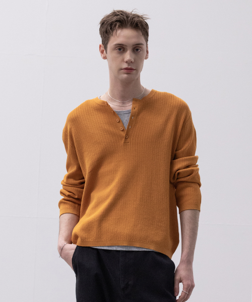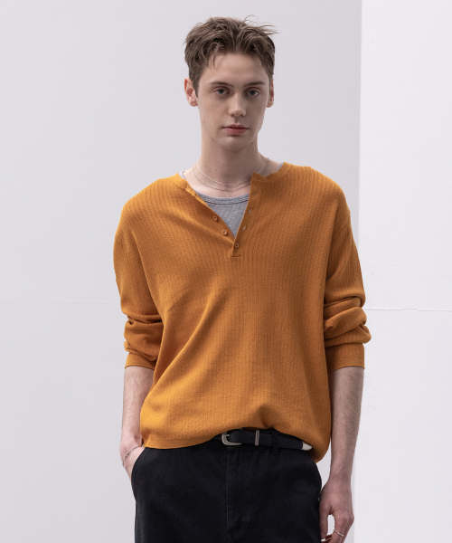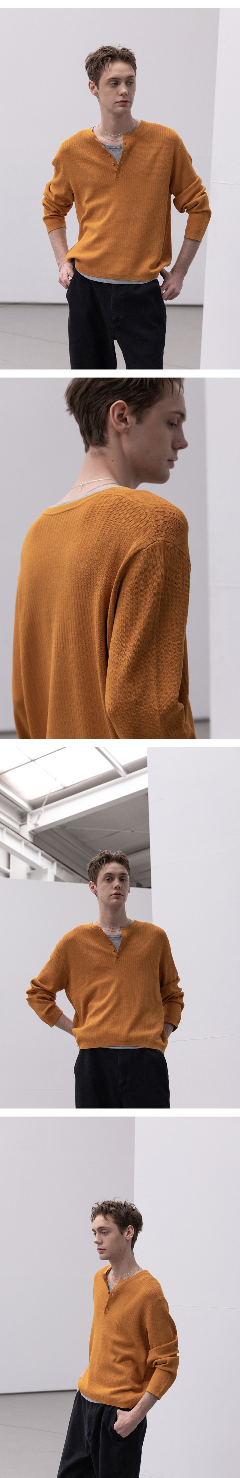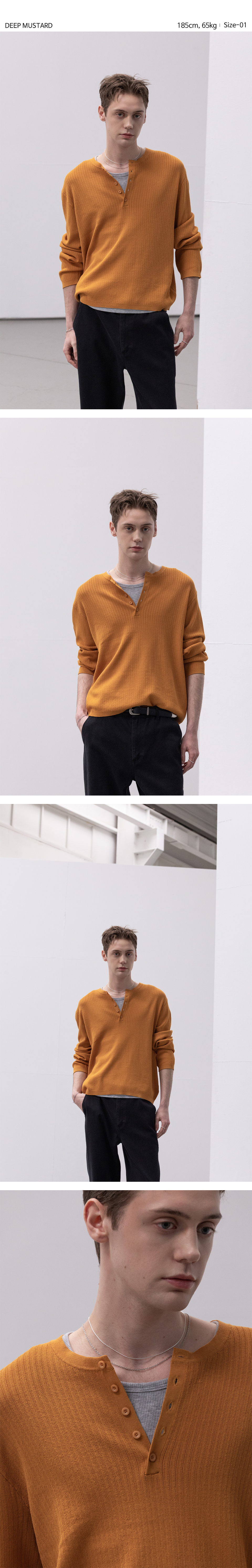 라이트 헨리넥 니트 티셔츠 [딥 머스타드]