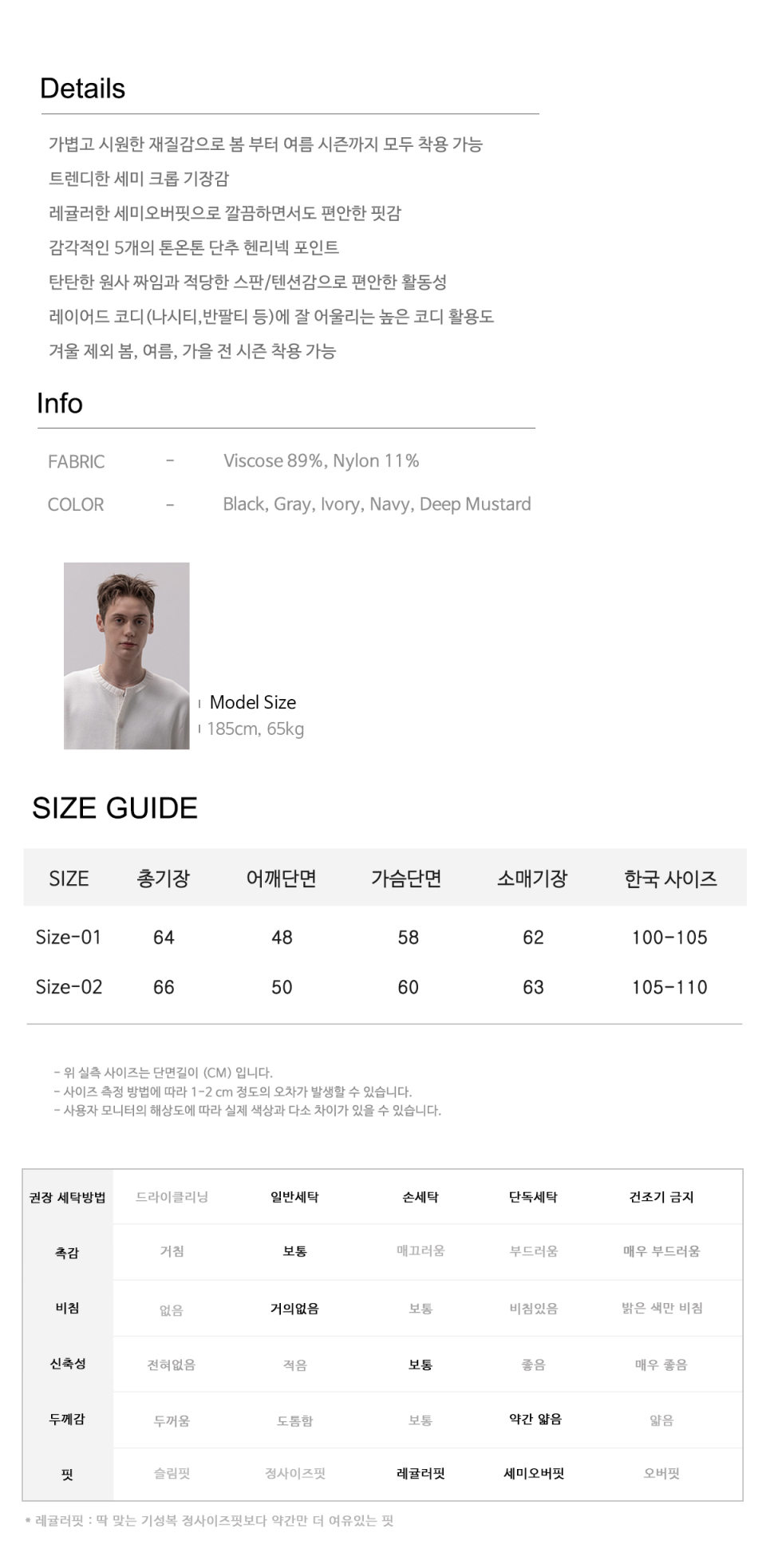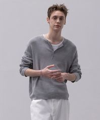 라이트 헨리넥 니트 티셔츠 [그레이]