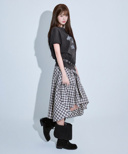 MAISON DE ROLA EMBROIDERY PIGMENT LOOSE FIT T-SHIRT CHARCOAL