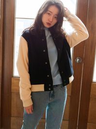 [리사이클 폴리에스터] 클레식 베이스볼 자켓 네이비