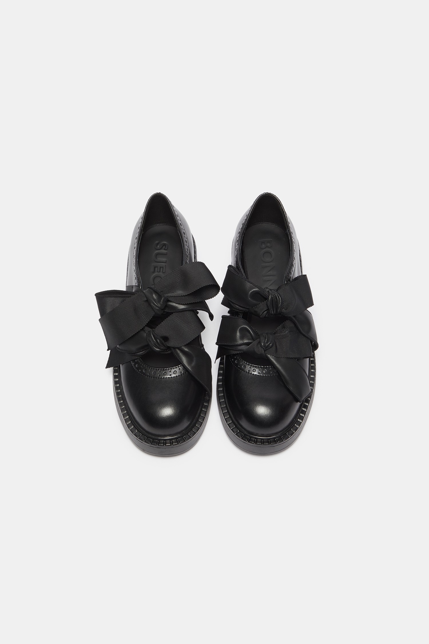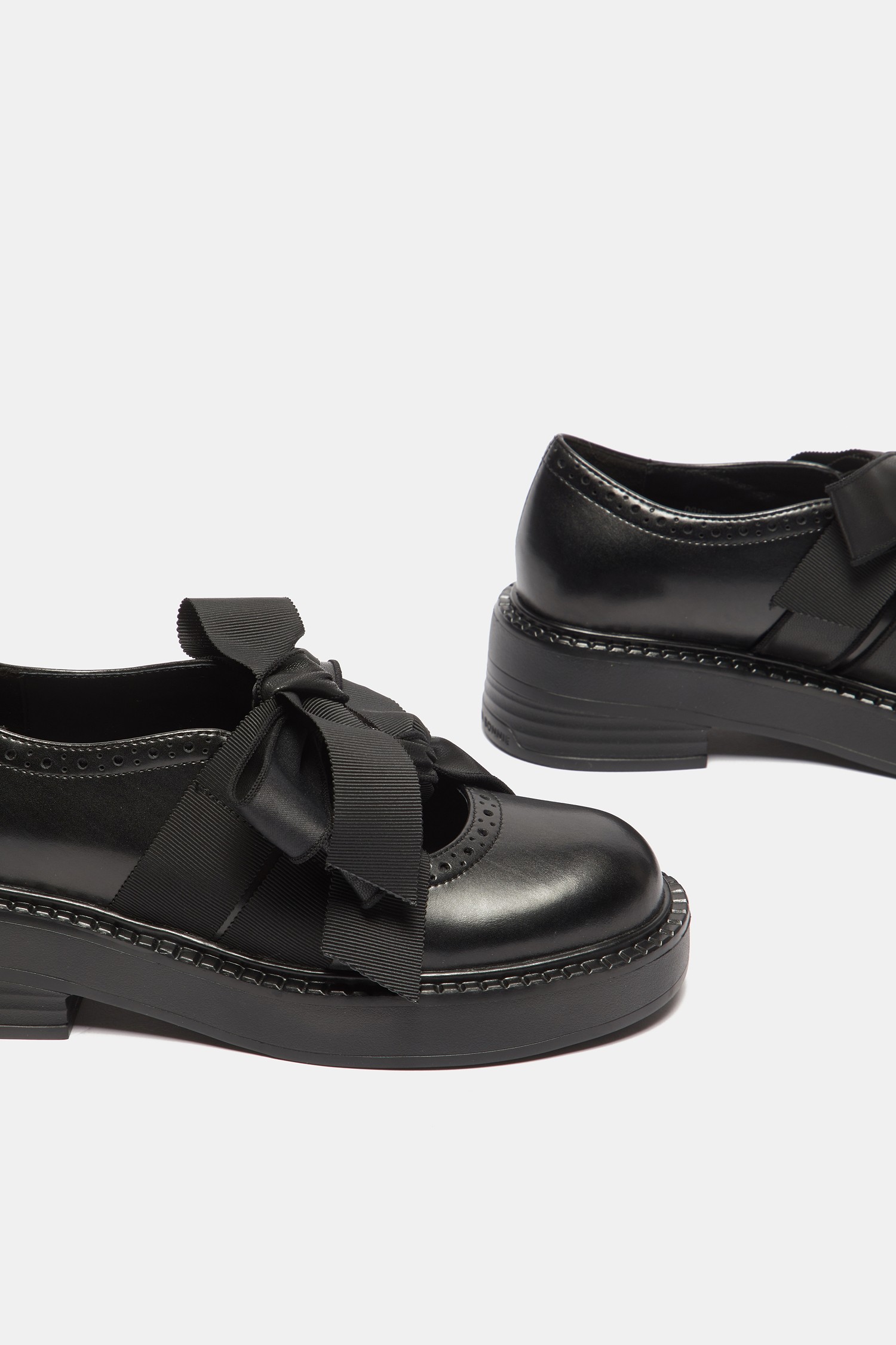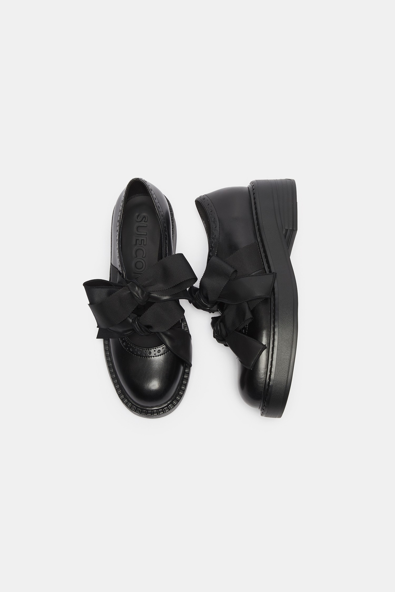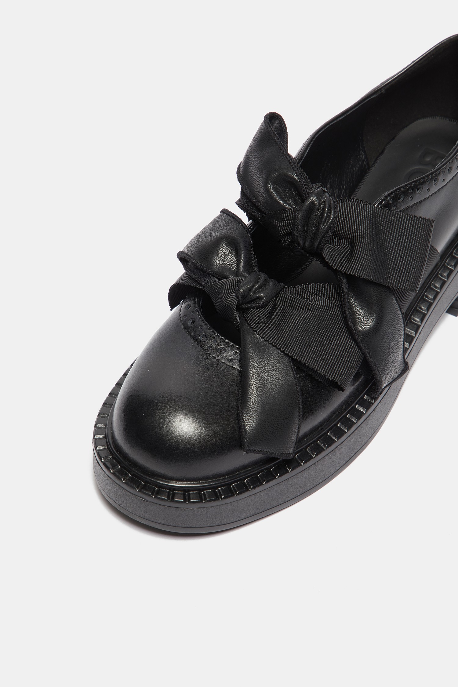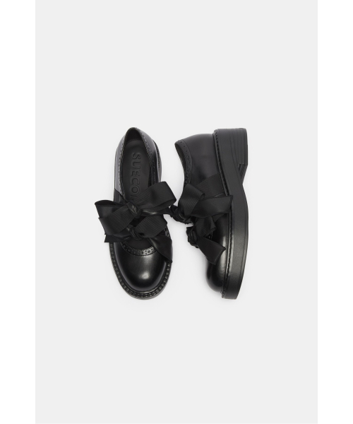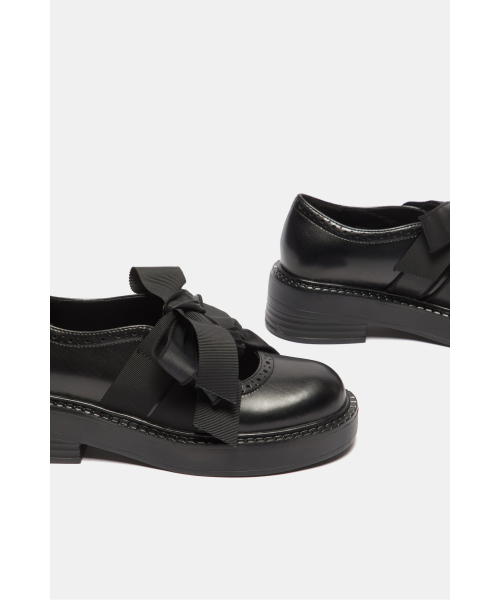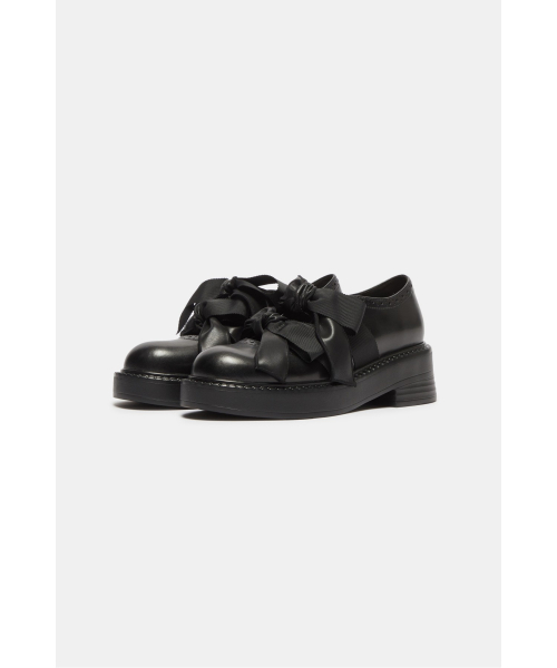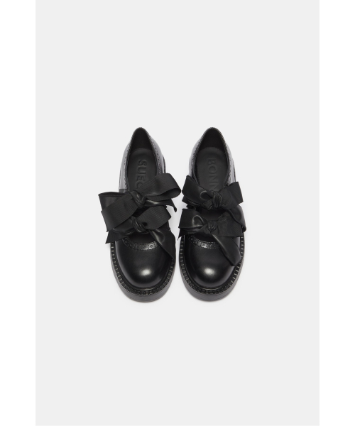 - 로퍼 특유의 단정한 라인에 발등 위로 큼직하게 올라오는 리본 디테일을 더해