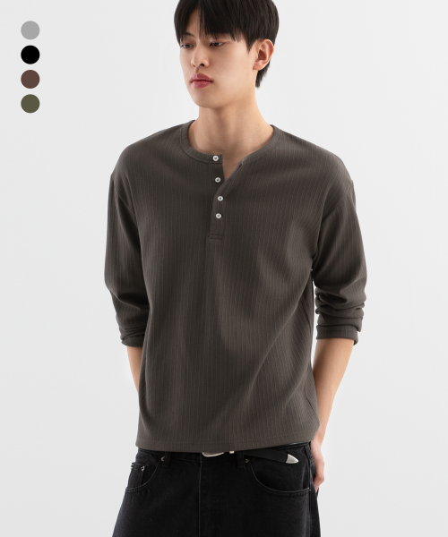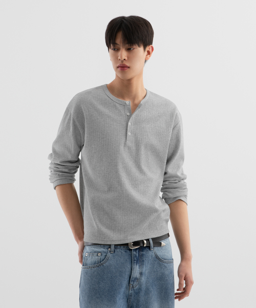 리브드 크롭 헨리넥 롱슬리브 ( 4Color )