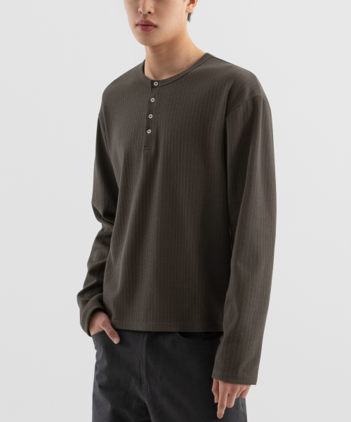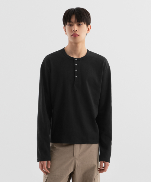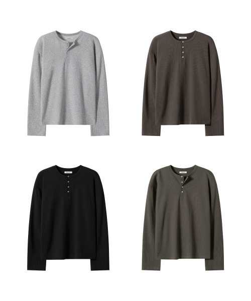 크롭 와플 헨리넥 긴팔 티셔츠[2COLORS]