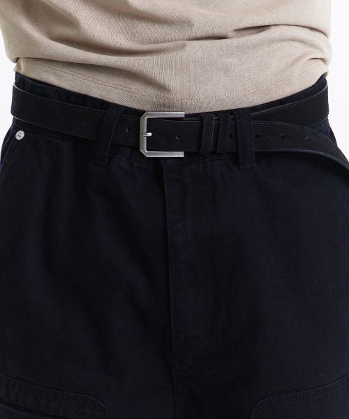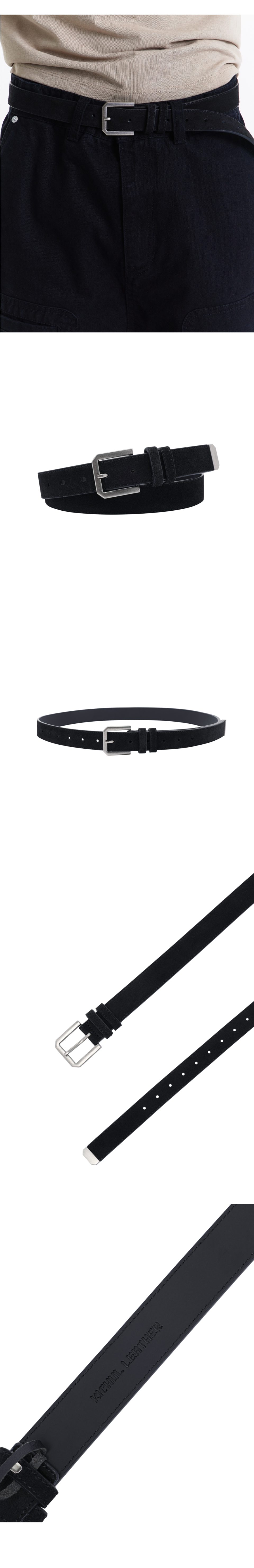 - 표면 결이 고르게 살아있는 스웨이드 텍스처가 돋보이는 스퀘어 버클 벨트