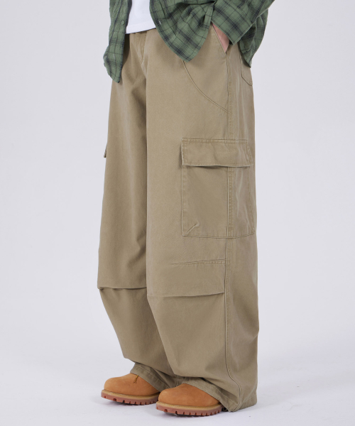 워싱 포켓 파라슈트 카고팬츠 베이지