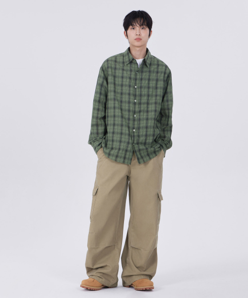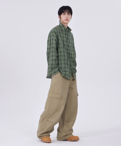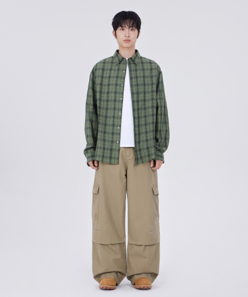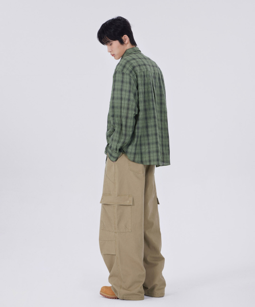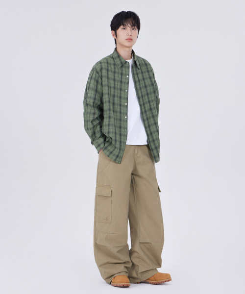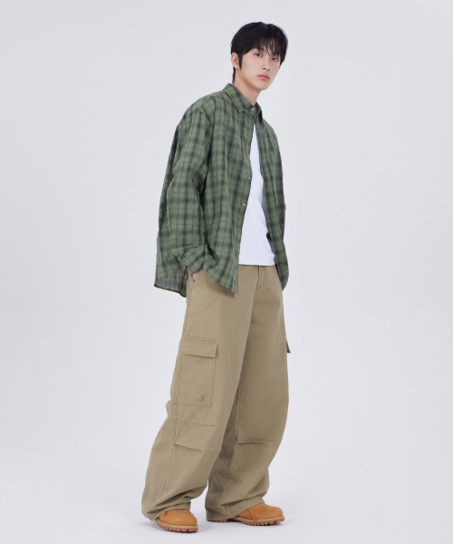 커브드 와이드 카고 팬츠 베이지
