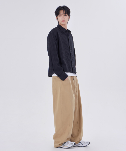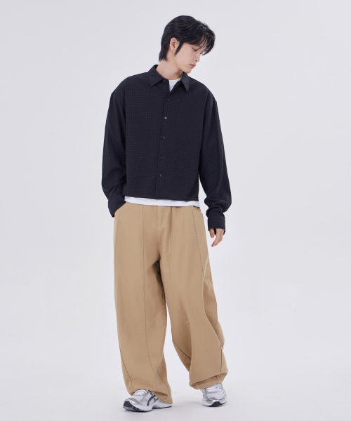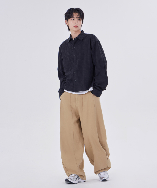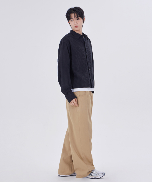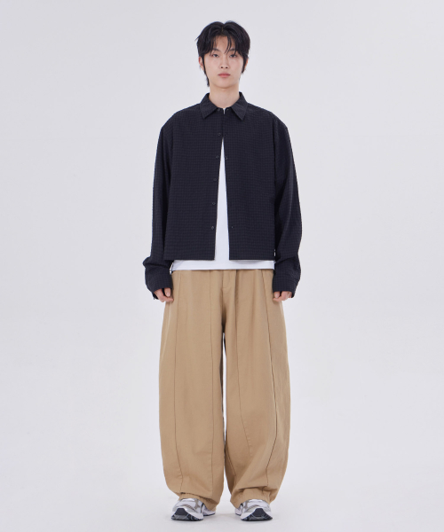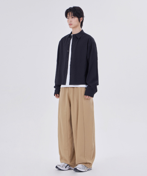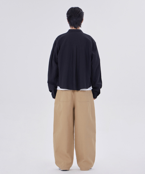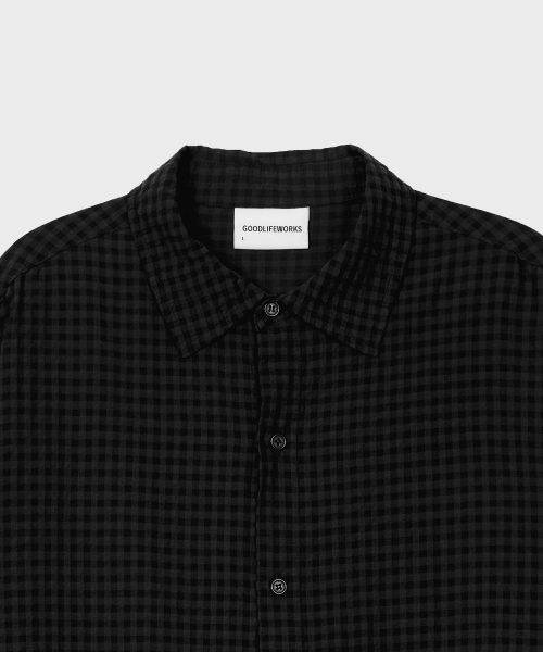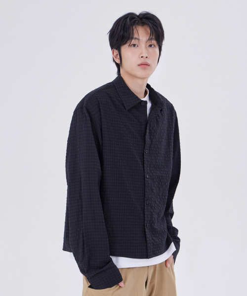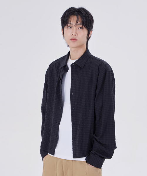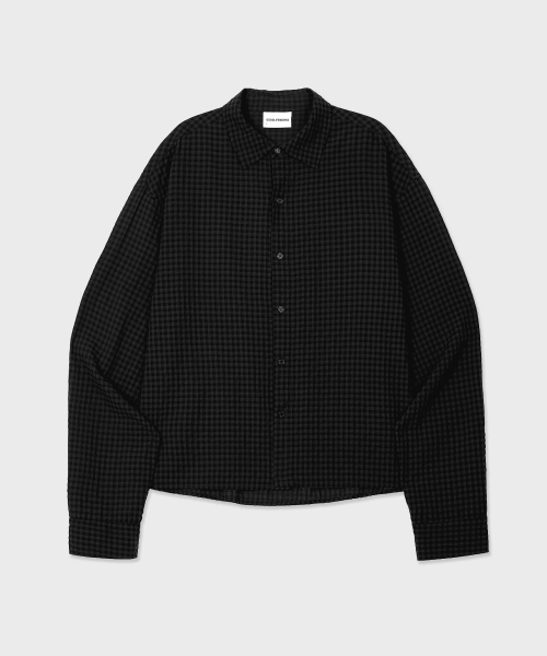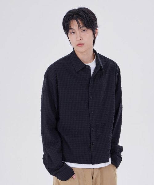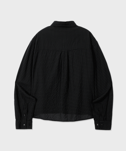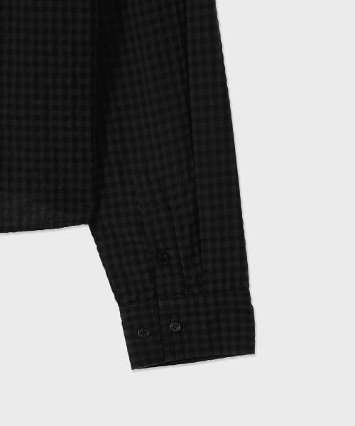 데일리 시어서커 체크 크롭 셔츠 블랙
