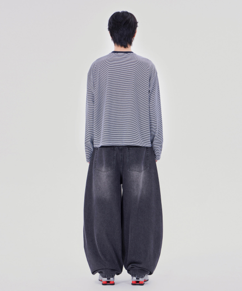 오버핏 스트라이프 코튼 롱슬리브 그레이