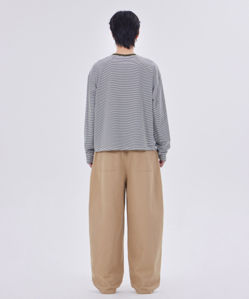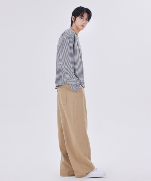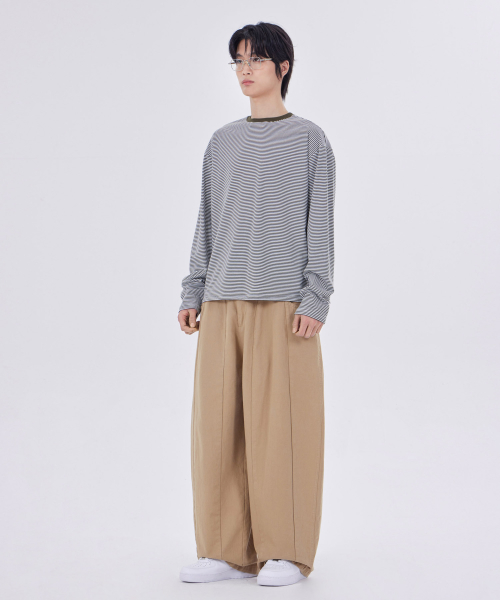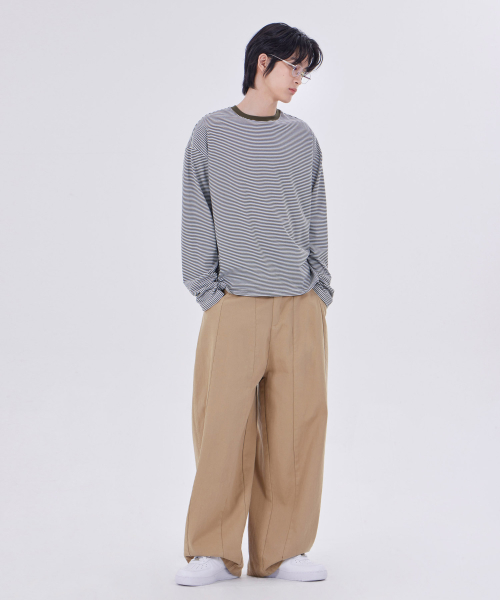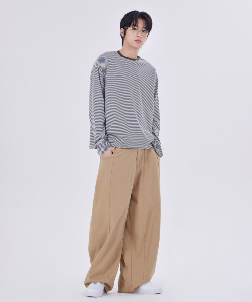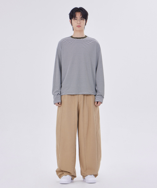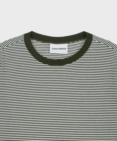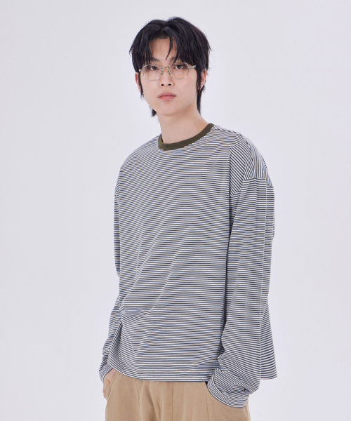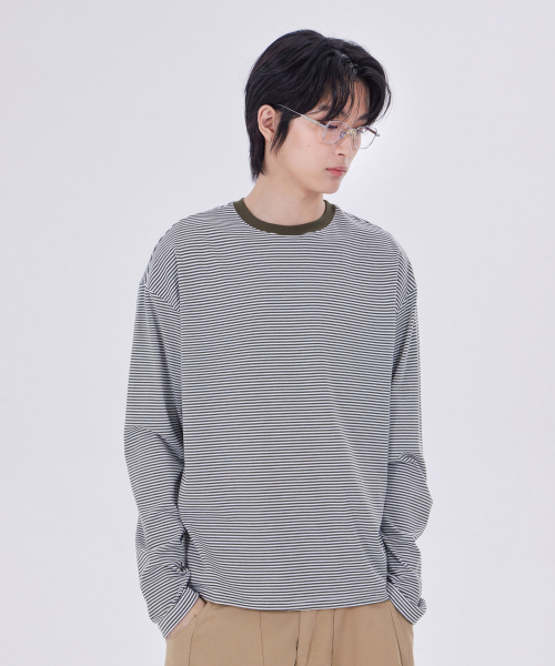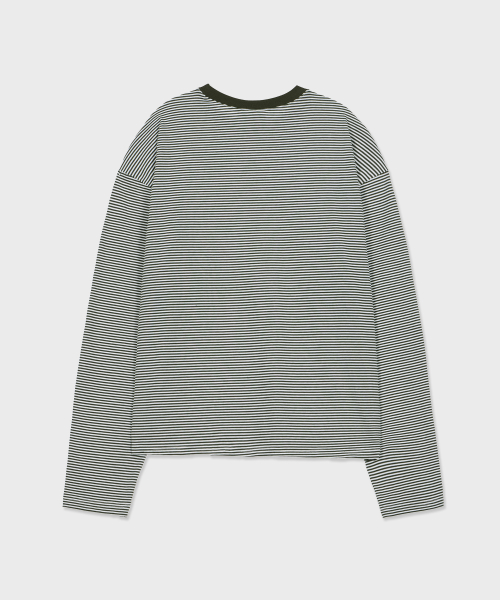 오버핏 스트라이프 코튼 롱슬리브 카키