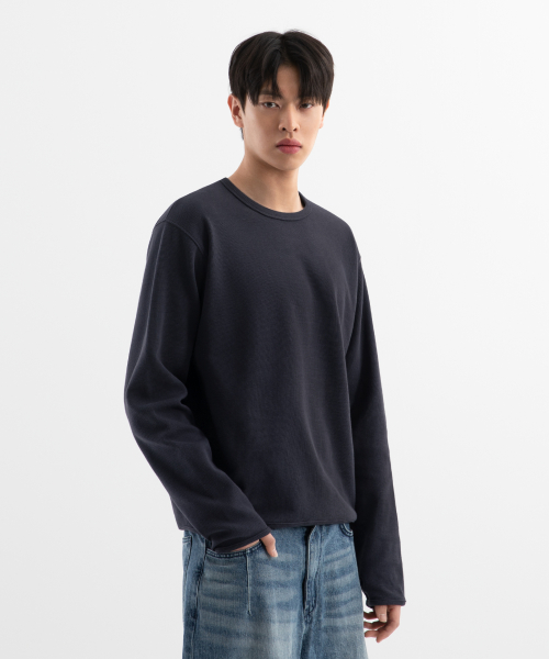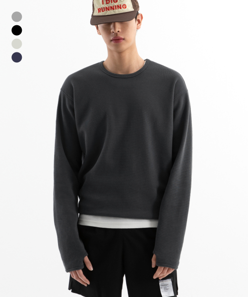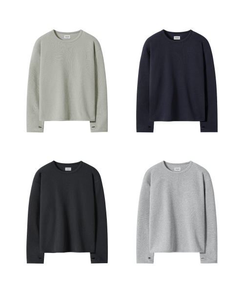 시티시어 와플 핑거홀 라운드 롱슬리브 ( 4Color )