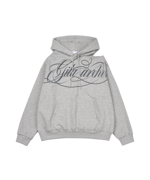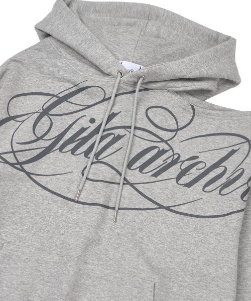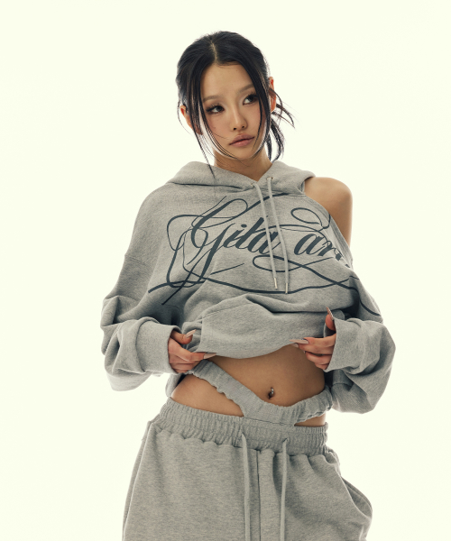 SCRIPT LETTERING ONE SHOULDER HOODED_GREY