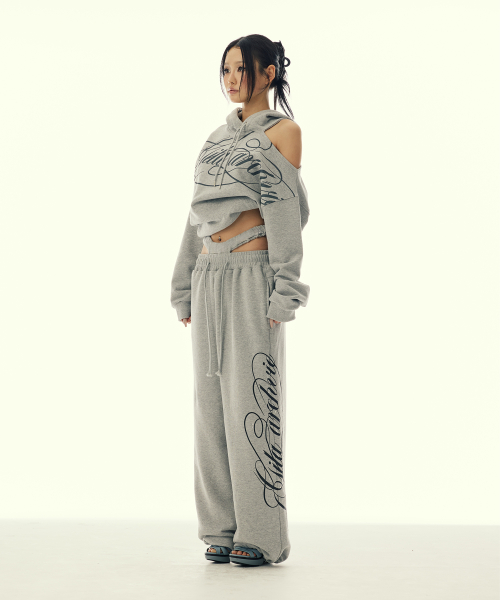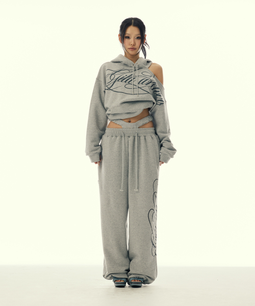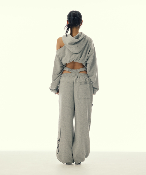 CUT-OUT DOUBLE WAIST SWEAT PANTS_GREY