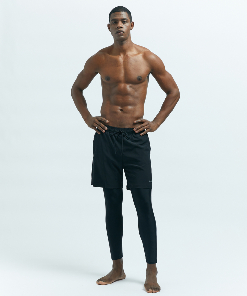 프리무브 러닝 에센셜 남자 9부 2인1 레깅스 팬츠 블랙