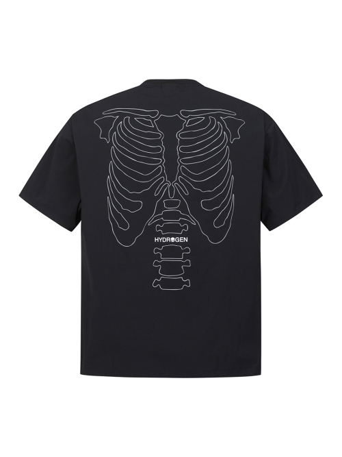 유니 뼈그래픽 우븐 반팔라운드