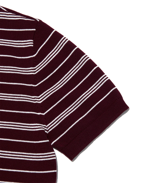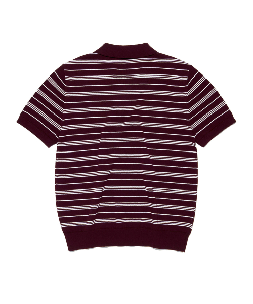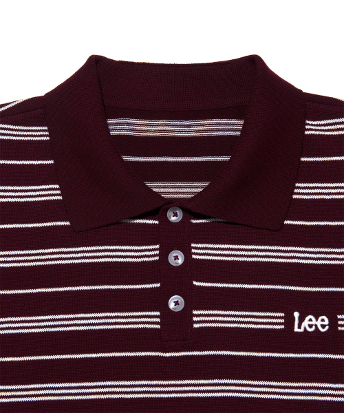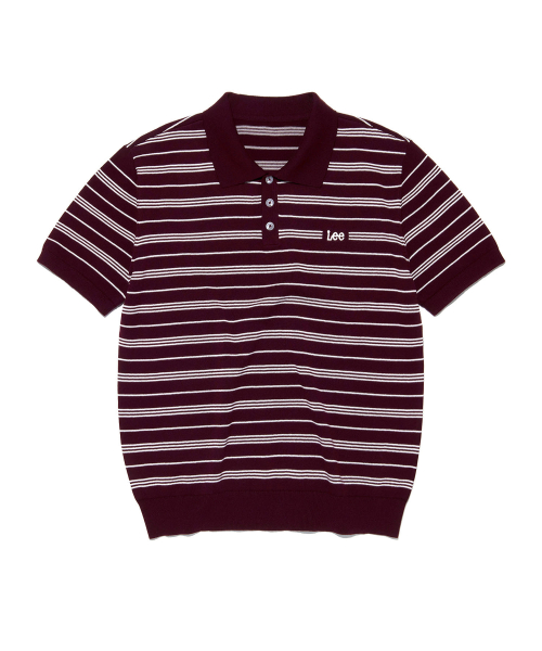 스트라이프 카라 반팔 니트 버건디