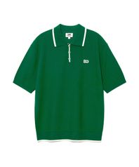 카라 배색 반팔 니트 그린