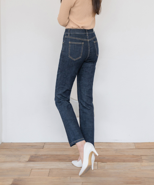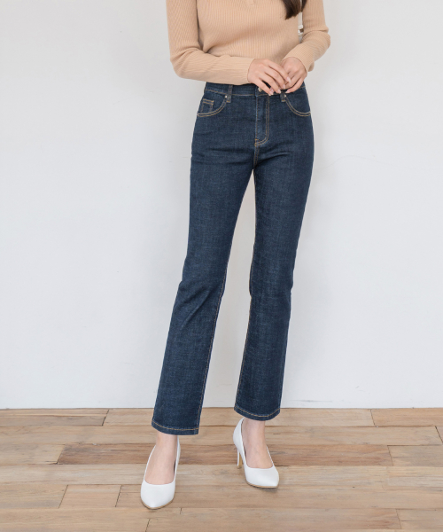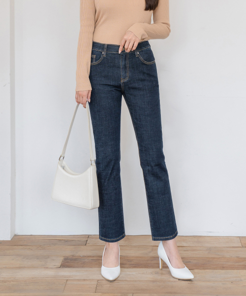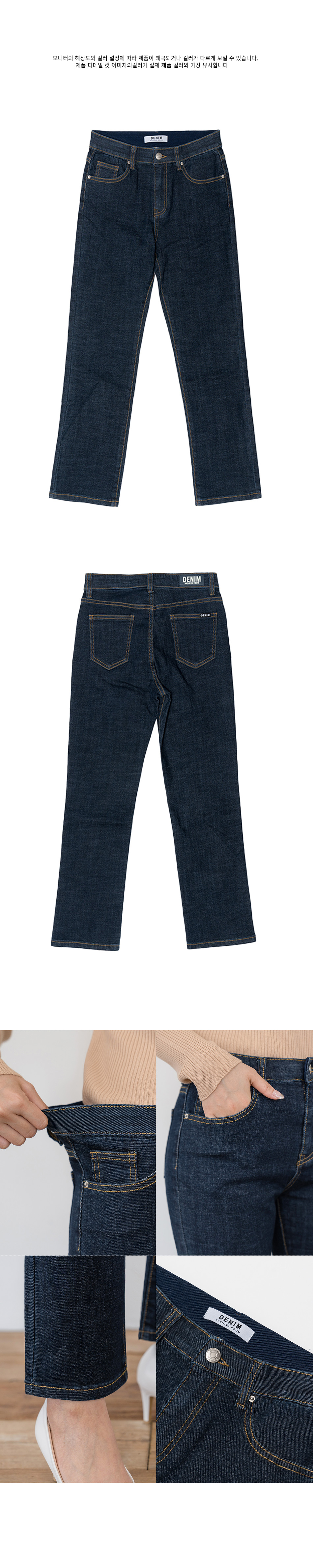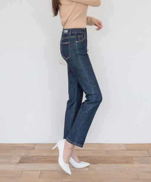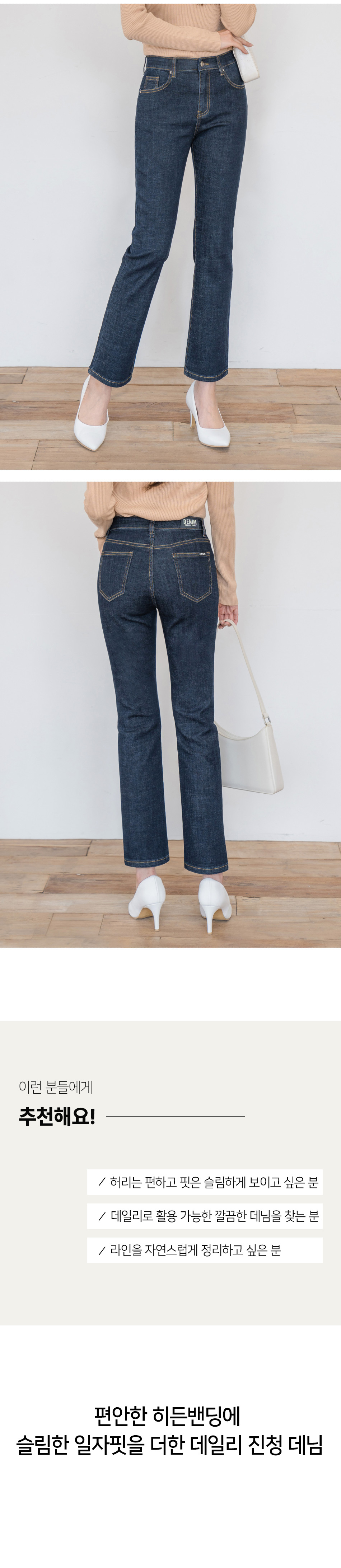 히든밴딩 스판 슬림 일자 데님 팬츠(진청 )