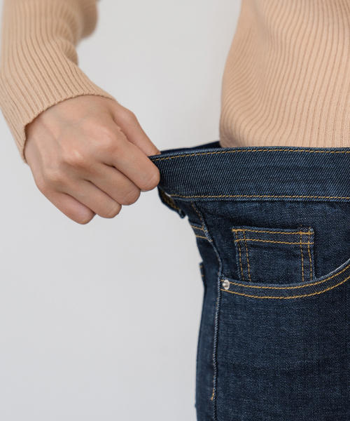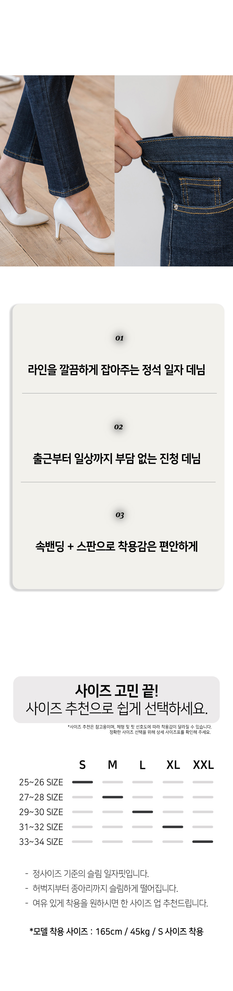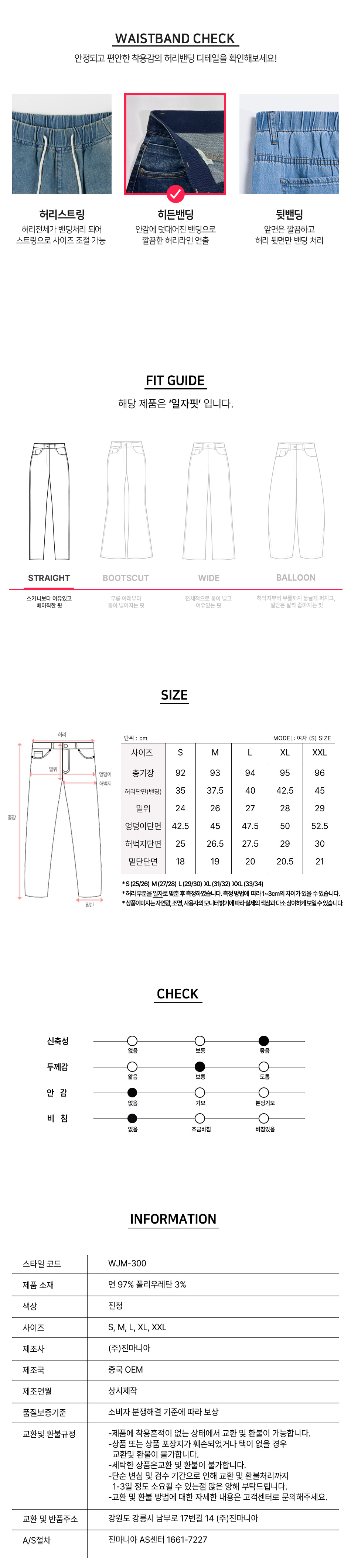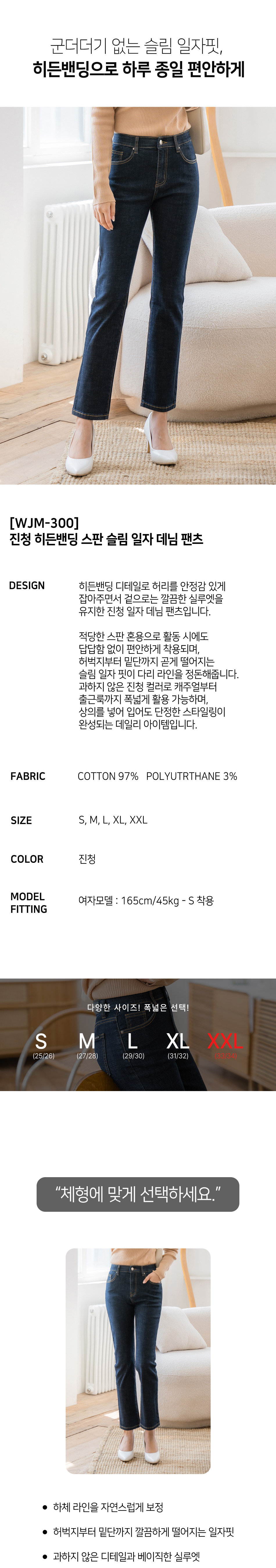 히든밴딩 스판 슬림 일자 데님 팬츠(진청 )