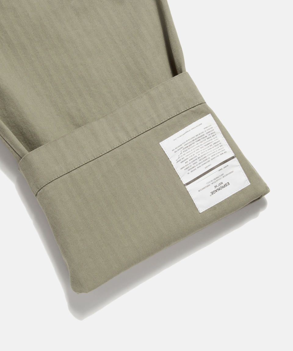 에스피오나지(ESPIONAGE)는 '밖을 보다' '숨겨져 있는 것을 발견한다'는 의미의 고대 프랑스어 ESPIRE에서 유래한 말로 지금은 타국의 비밀 정보를 수집하는 첩보 활동을 뜻하기도 합니다. 첩보 활동의 의미가 적진에서 은밀히 적들의 정보를 빼오는 것을 말하는 것처럼 에스피오나지가 만드는 아이템에는 숨겨져 있는 것을 찾아내는 과정을 포함하고 있습니다. 클래식, 밀리터리, 아웃도어 등 이미 만들어져 있는 의복을 베이스로 우리가 중요하게 생각하는 원단과 부자재, 기술, 핏 등의 요소들을 정확하게 탐구하고 수집해 조합, 재정의 혹은 재해석된 결과물을 만들고자 합니다. 사전적인 의미의 에스피오나지가 가지는 부정적인 첩보 활동의 이미지가 아닌 첩보 활동의 과정, 즉 본질에 대한 탐구와 조사 활동이라는 긍정적인 느낌을 전달하려 하며 수집된 정보를 하나의 작업물로 만들어내는 일련의 과정과 그렇게 완성한 에스피오나지의 아이템을 통해 다시 만드는 과정을 다시 유추하려는 생각들 모두 에스피오나지입니다.