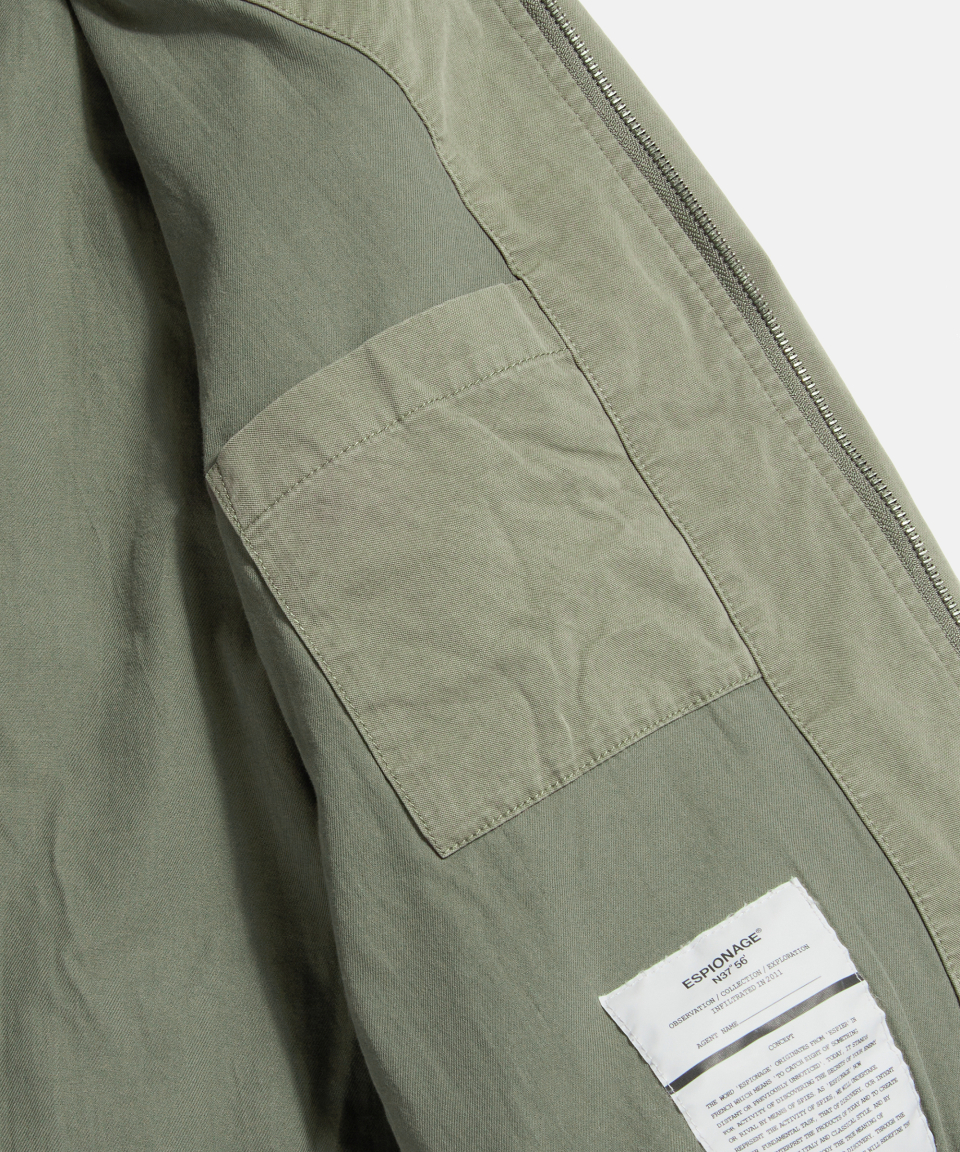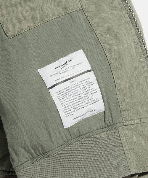 에스피오나지(ESPIONAGE)는 '밖을 보다' '숨겨져 있는 것을 발견한다'는 의미의 고대 프랑스어 ESPIRE에서 유래한 말로 지금은 타국의 비밀 정보를 수집하는 첩보 활동을 뜻하기도 합니다. 첩보 활동의 의미가 적진에서 은밀히 적들의 정보를 빼오는 것을 말하는 것처럼 에스피오나지가 만드는 아이템에는 숨겨져 있는 것을 찾아내는 과정을 포함하고 있습니다. 클래식, 밀리터리, 아웃도어 등 이미 만들어져 있는 의복을 베이스로 우리가 중요하게 생각하는 원단과 부자재, 기술, 핏 등의 요소들을 정확하게 탐구하고 수집해 조합, 재정의 혹은 재해석된 결과물을 만들고자 합니다. 사전적인 의미의 에스피오나지가 가지는 부정적인 첩보 활동의 이미지가 아닌 첩보 활동의 과정, 즉 본질에 대한 탐구와 조사 활동이라는 긍정적인 느낌을 전달하려 하며 수집된 정보를 하나의 작업물로 만들어내는 일련의 과정과 그렇게 완성한 에스피오나지의 아이템을 통해 다시 만드는 과정을 다시 유추하려는 생각들 모두 에스피오나지입니다.