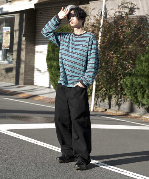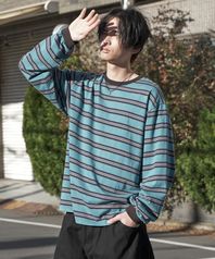 피그먼트 스트라이프 링거 긴팔 티셔츠 - 블루
