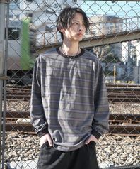 피그먼트 스트라이프 링거 긴팔 티셔츠 - 차콜