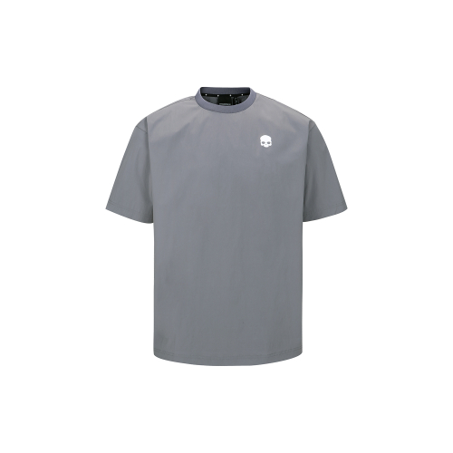 유니 뼈그래픽 우븐 반팔라운드