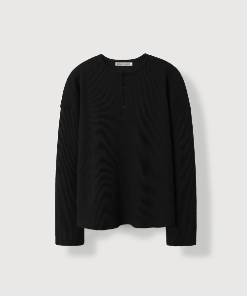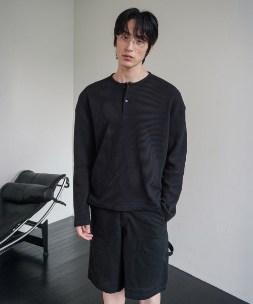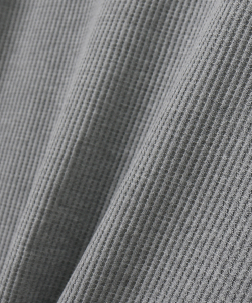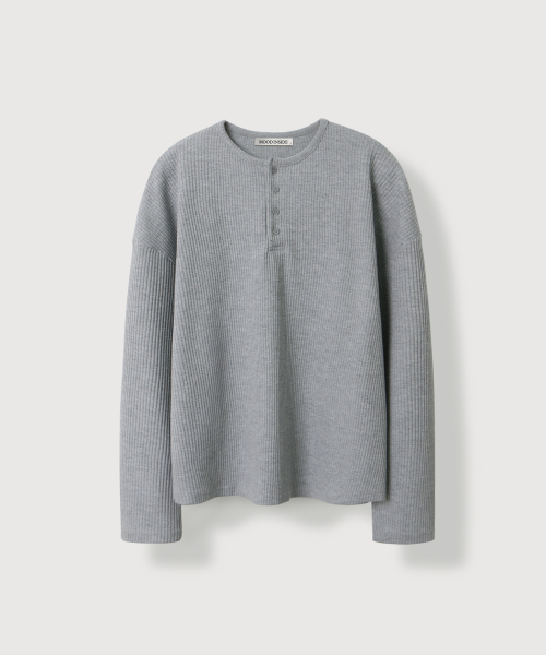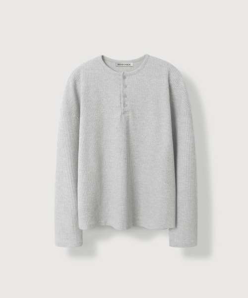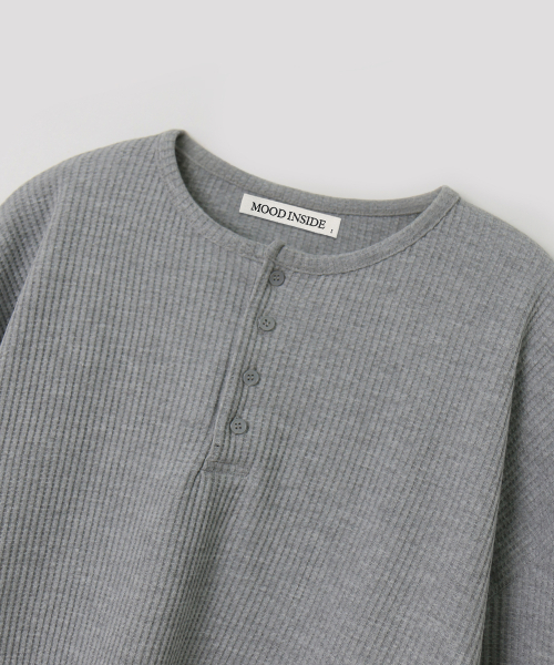 와플 세미 크롭 헨리넥 롱슬리브_Gray