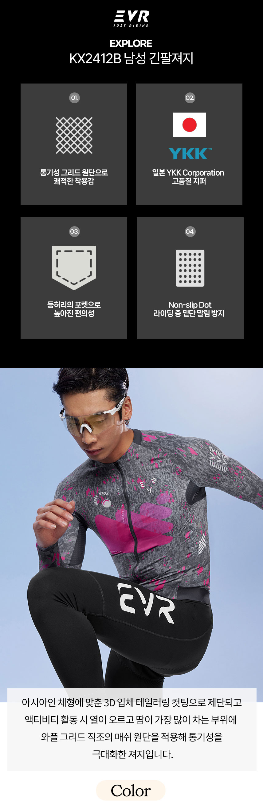 이브이알(EVR)은 감각적인 디자인과 기능성을 바탕으로 도심부터 산악 지형까지 다양한 라이딩 환경을 아우르며 사이클링을 단순한 스포츠를 넘어 일상의 라이프스타일로 확장해 제안하는 전문 사이클링 브랜드입니다.
