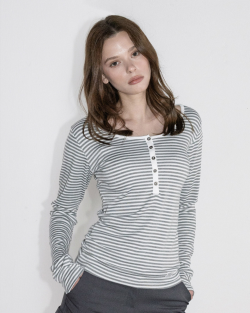 - 슬림핏, U넥 라인, 앞면 버튼 여밈