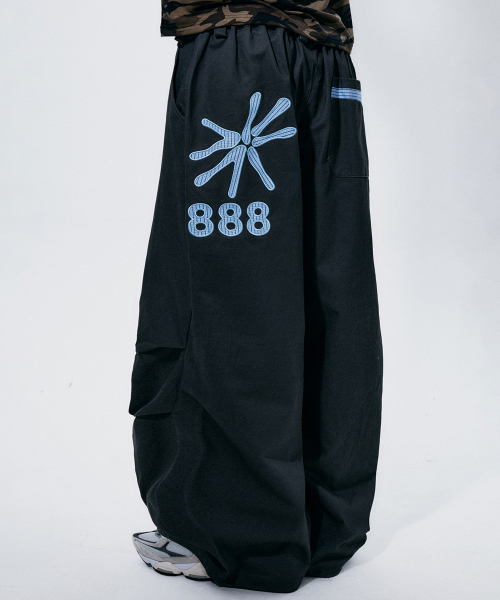 더블 파라슈트 핀턱 키링 코튼 와이드 캐주얼 팬츠 [블랙]