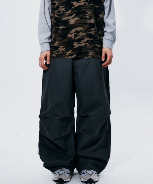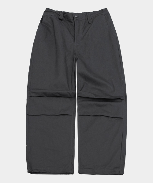 더블 파라슈트 핀턱 키링 코튼 와이드 캐주얼 팬츠 [차콜]
