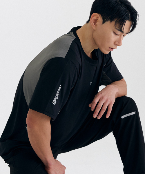 러닝 컬러블록 티셔츠 AM1215 BK