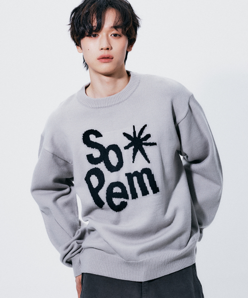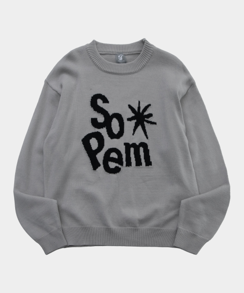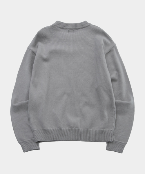 레터링 로고 배색 라운드넥 긴팔 오버핏 니트 맨투맨 [그레이]