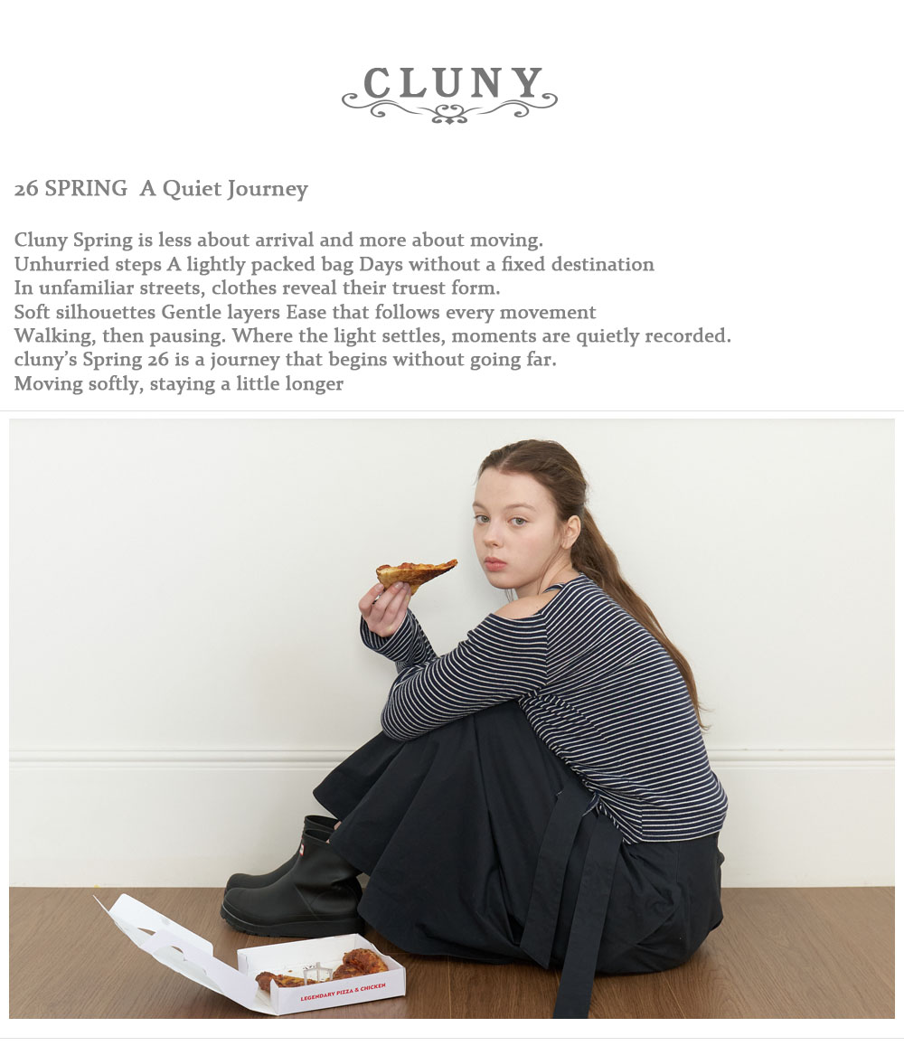 클루니(CLUNY)는 일상 속 클린한 실루엣을 지향하는 여성복 브랜드입니다. 여성들이 일상에서 자신감을 가질 수 있도록 우아하고 시크한 룩을 제안합니다.