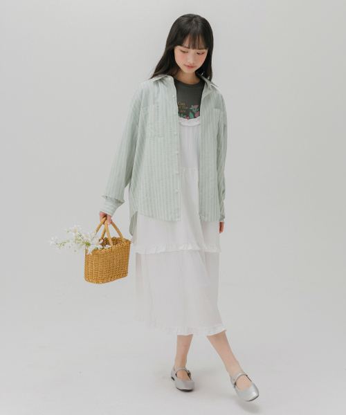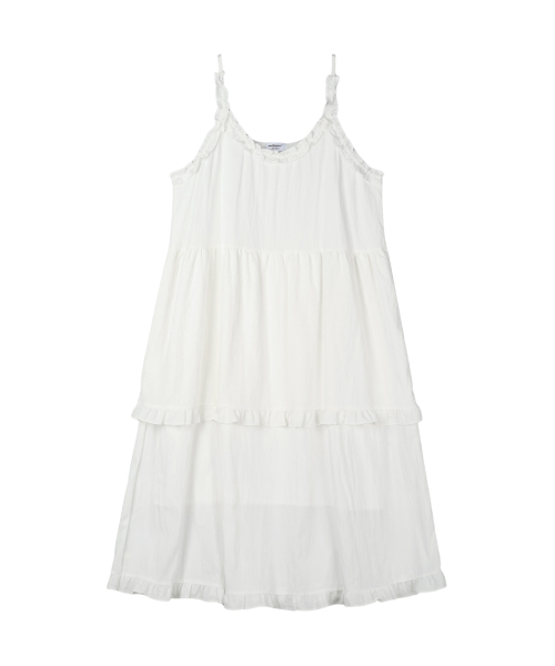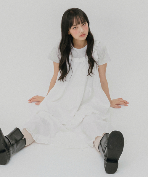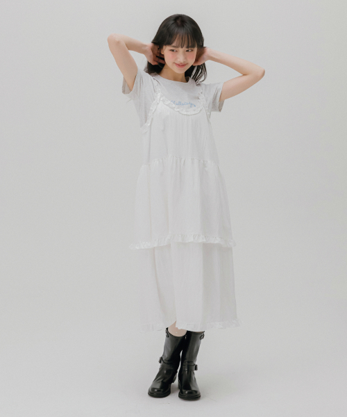 프릴 레이어 롱 원피스 (화이트)
