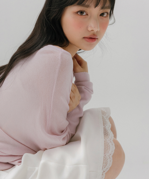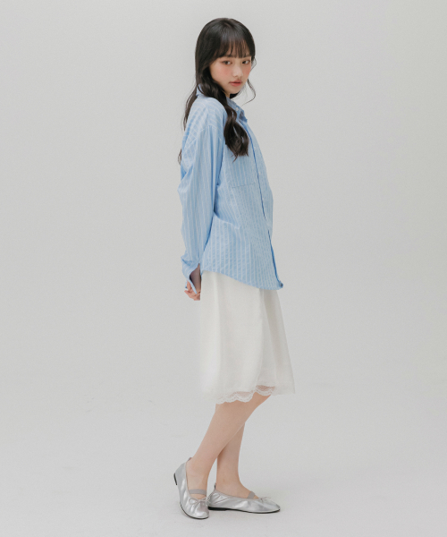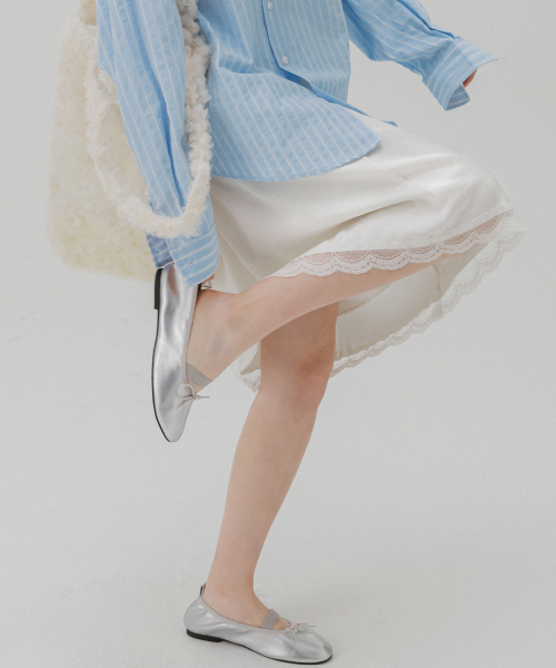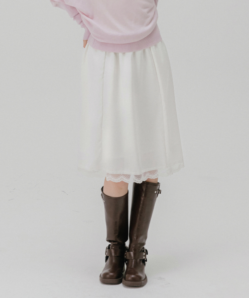 레이스 사틴 미디 스커트 (아이보리)