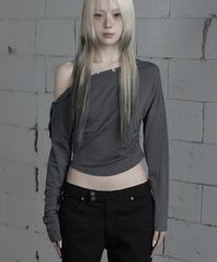 Shoulder Line Button Long Sleeve (Charcoal)