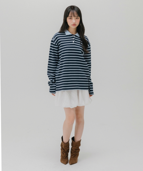 스트라이프 콤비 버튼 티셔츠 (2color)
