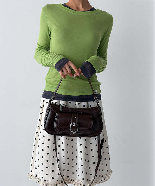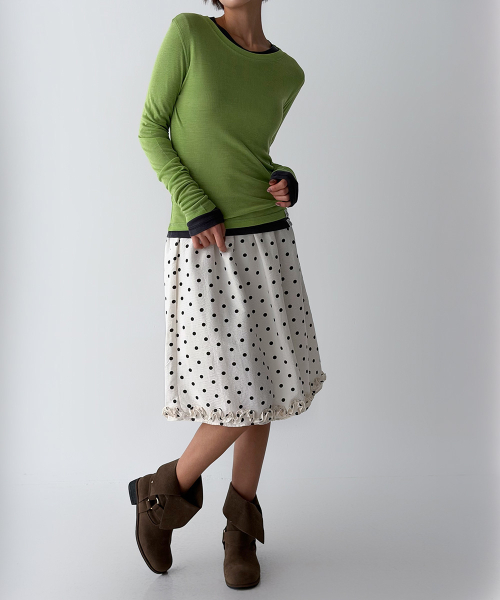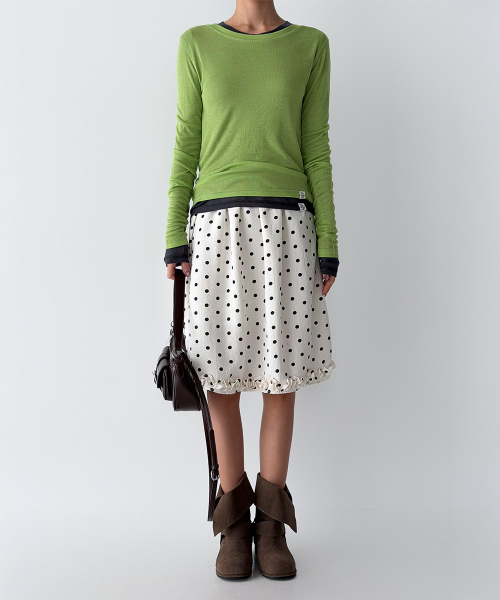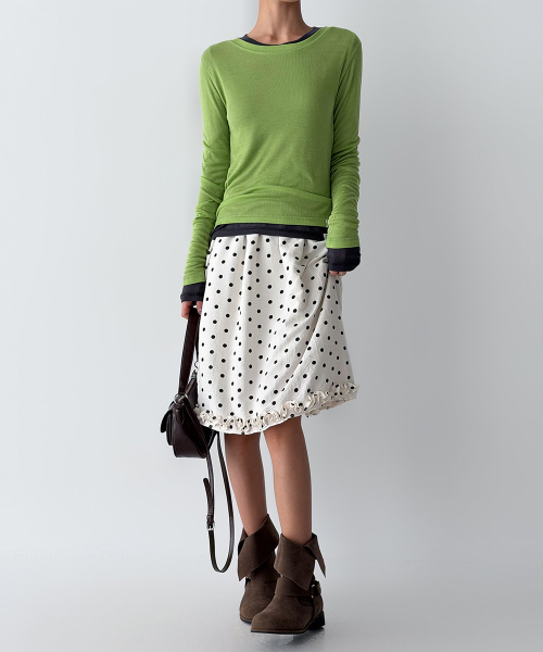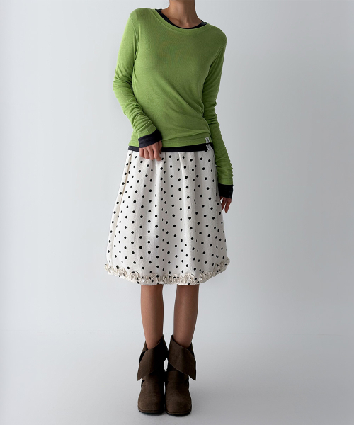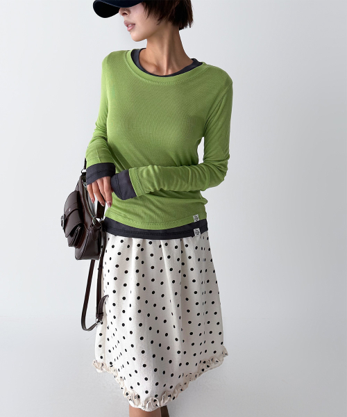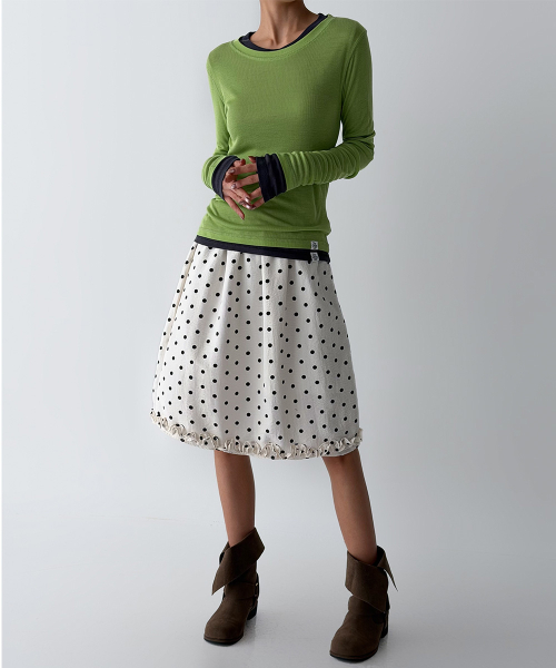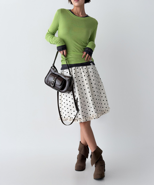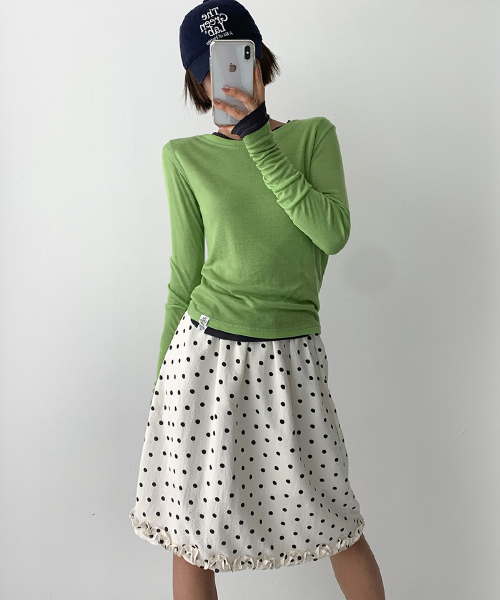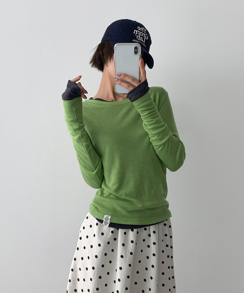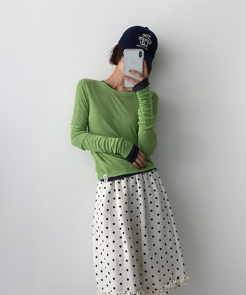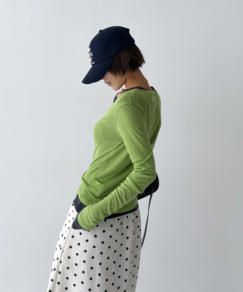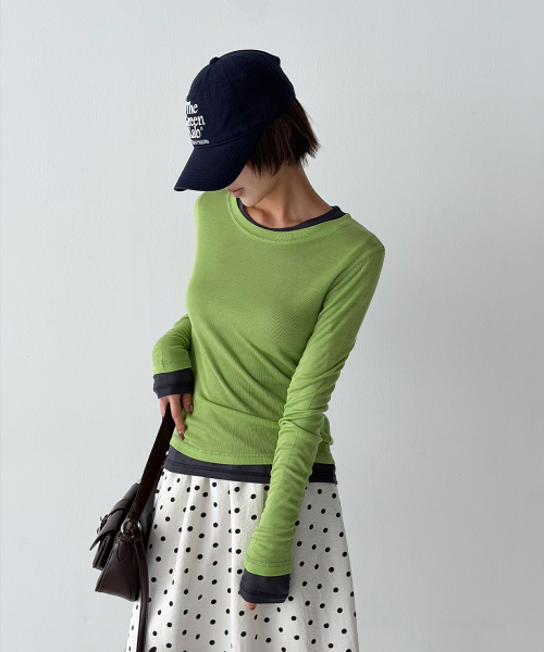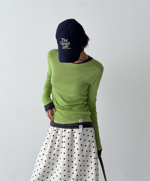 바디 라인을 따라 자연스럽게 밀착되는 슬림 핏과 손등을 여유 있게 덮는 롱 슬리브 설계로, 전체적인 실루엣을 더욱 균형감 있게 연출해 줍니다.