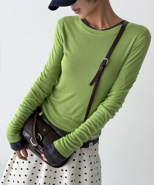 가볍게 흐르는 실루엣과 여유 있는 라운드 넥 라인이 어우러져 단독으로도, 이너로도 활용하기 좋은 소프트 텐셀 에어리 롱슬리브입니다.