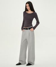 우먼즈 피그먼트 리브드 슬림 스쿱 넥 긴소매 티셔츠 [차콜 그레이]