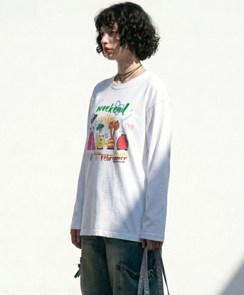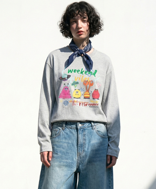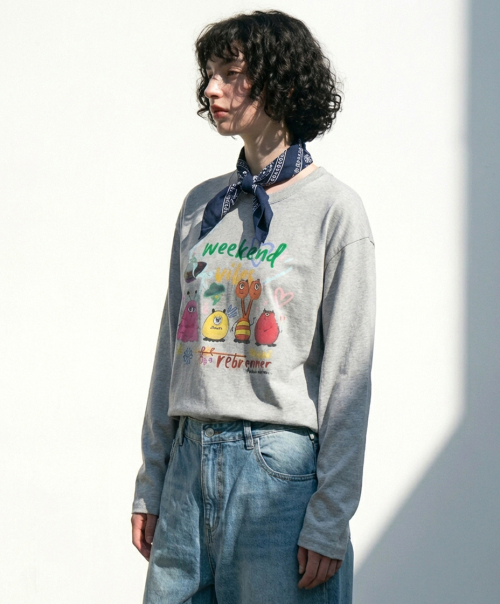 DTF 위크앤드바이브 롱슬리브 긴팔티셔츠 그레이