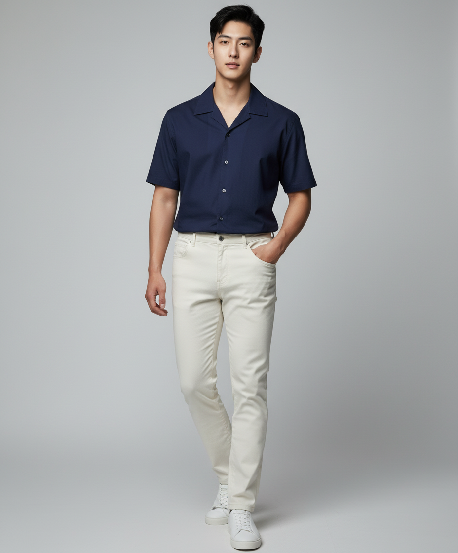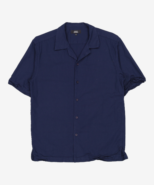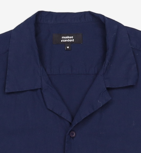 오픈 칼라 쇼트 슬리브 셔츠 [네이비] M
