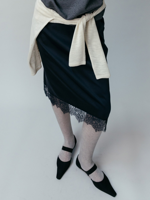Glossy Lace-Trimmed Midi Skirt SW6SS686-24