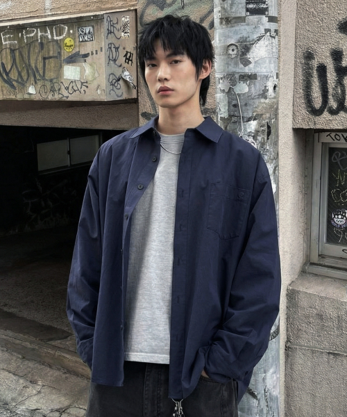 남여공용 60수 고밀도 바이오 워싱 오버핏 셔츠_PL25S3SH055_LGR